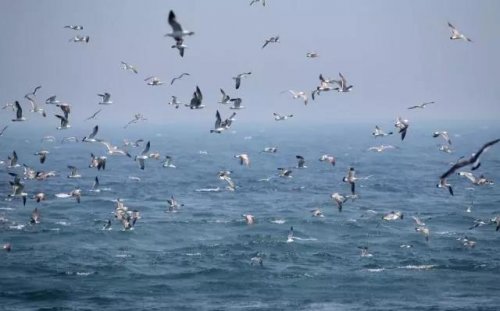 6月13日,在连云港最东端的车牛山岛上,上万只海鸥翱翔觅食。前三岛是分布在黄海中的平山岛、车牛山岛和...
